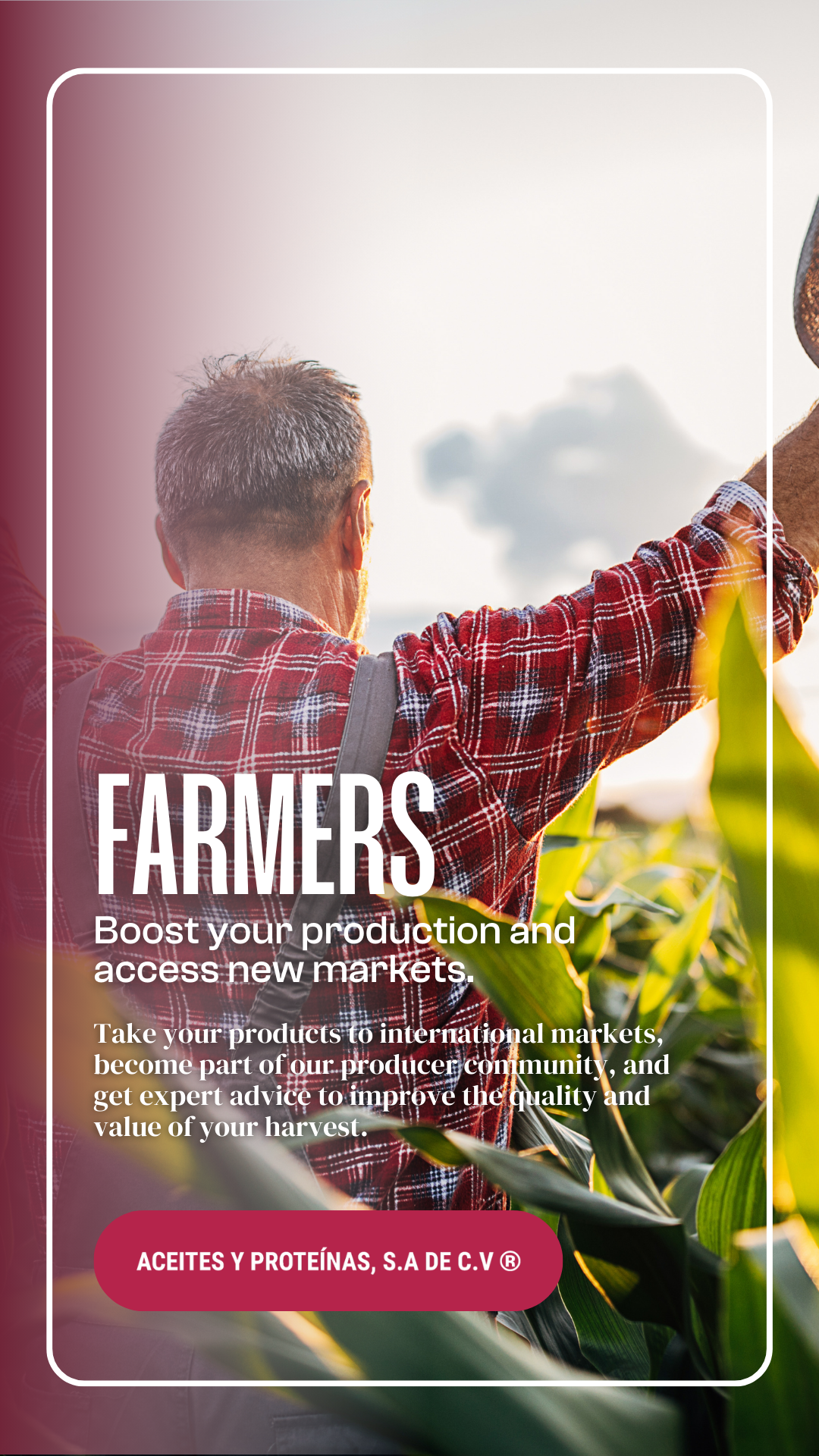 We support farmers in expanding their markets and provide companies with the highest quality food products.